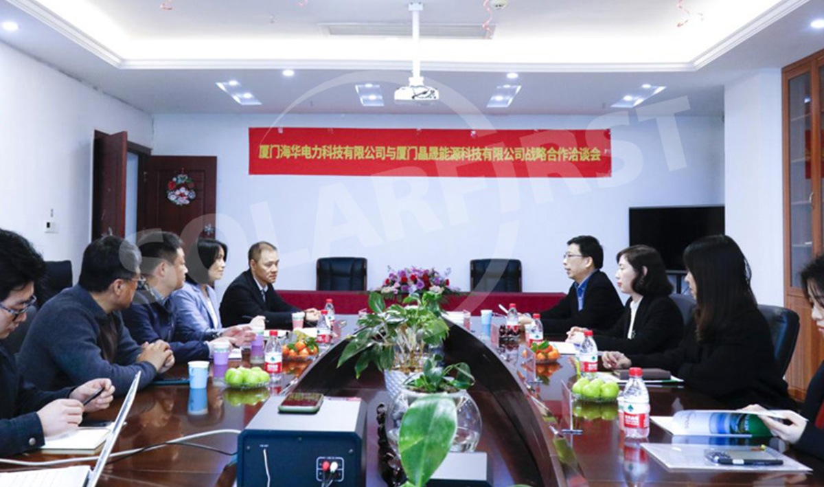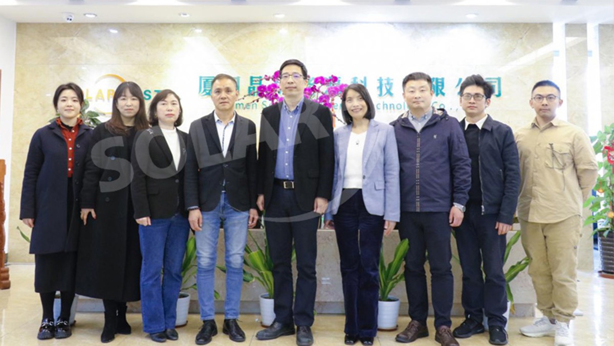 2023年2月2日, 太阳能第一集团 欢迎来自 厦门海化电源科技有限公司 由...领导 蒋朝阳 (董事长、党支部书记、总经理)陪同 刘静 (首席财务官) 董倩倩 (营销经理) 苏心怡 (营销助理)。 叶松平 (主席), 周平 (总经理), 张少峰 (副总经理)等Solar First集团代表接待了此次来访。