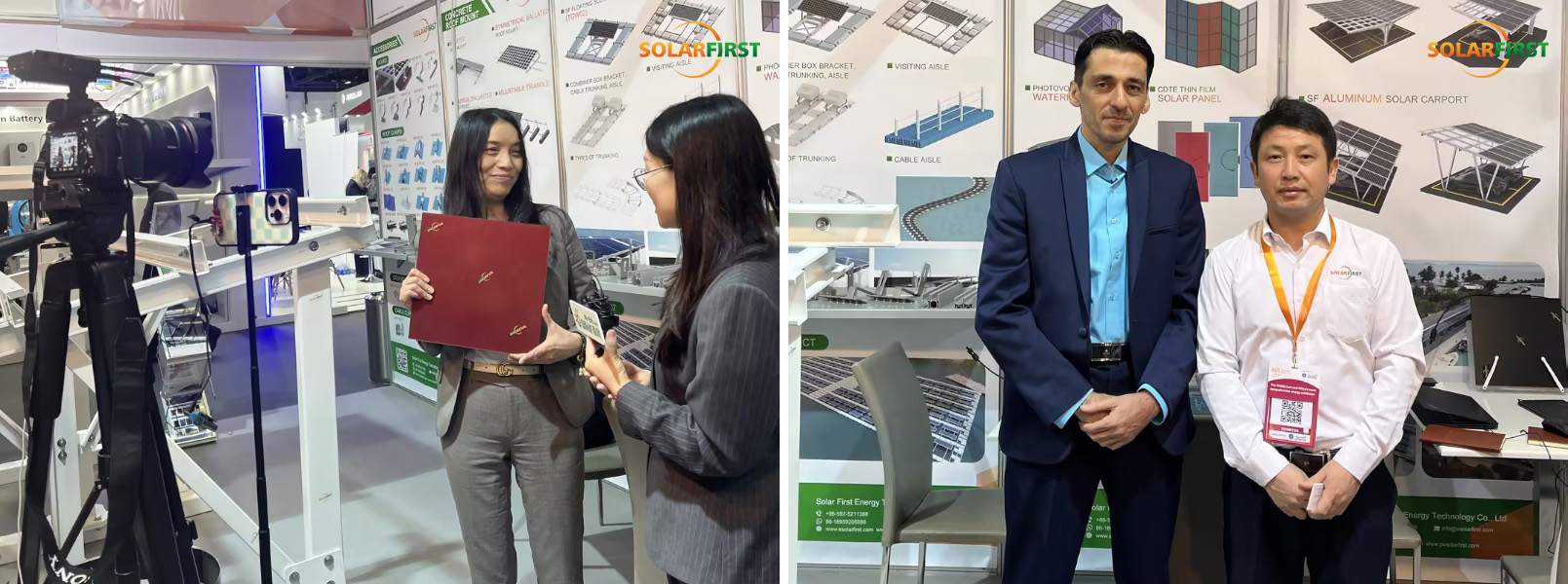 中东能源2025展览会于4月7日至9日在迪拜世界贸易中心圆满落幕。全球领先的光伏支架解决方案供应商Solar First在H6.H31展位展示了其技术实力。该公司展示了其专有的跟踪系统、地面/屋顶安装解决方案、发电玻璃以及储能创新技术,从而构建了从公用事业规模的电厂到分布式能源系统的全面应用。此次展会既是展示技术实力的平台,也是加强与国际能源企业合作的平台。