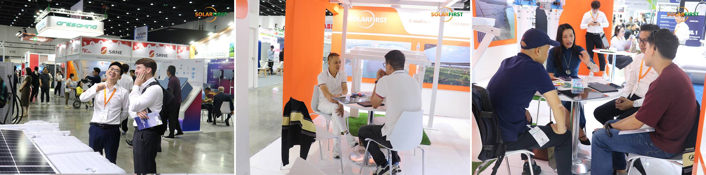 2025年7月2日至4日,Solar First集团在曼谷亚洲可持续能源周期间,于K35展位展示了其先进的光伏解决方案。此次展会吸引了众多客户对其漂浮式光伏系统、智能跟踪器和建筑一体化光伏(BIPV)解决方案的浓厚兴趣,展现了市场对可靠太阳能技术的强劲需求。
