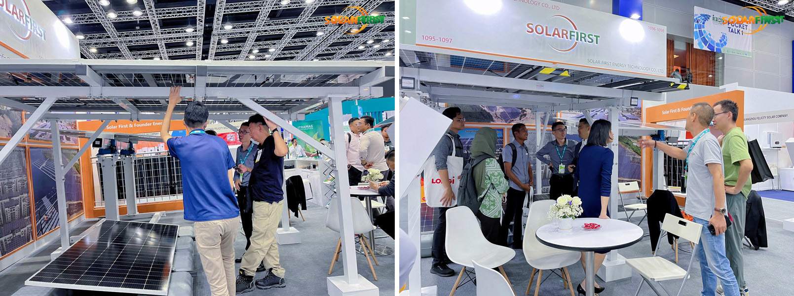 本次展会上,Solar First 在马来西亚国际贸易展览中心 1 号展厅 1095-1098 号展位展示了其 TGW 浮动光伏系列、Horizon 跟踪系统、屋顶光伏支架、防水太阳能车棚以及阳台安装解决方案。公司凭借创新产品和优质服务吸引了众多国内外新老客户。