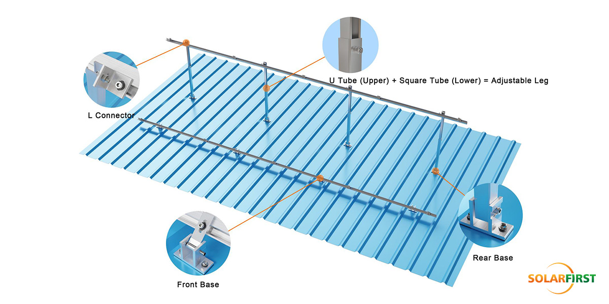 这些太阳能可调节支腿易于安装,经久耐用,可与标准金属屋顶安装支架和太阳能板夹无缝配合。该系统支持多种配置,减少材料使用,并简化组装,使其成为适用于各种太阳能项目的经济高效且适应性强的解决方案。