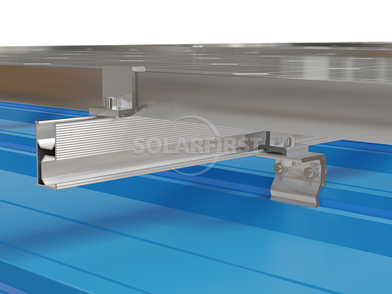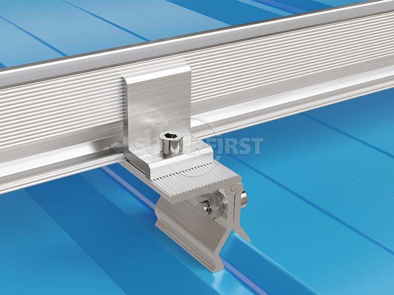 该系统采用轻质铝金属屋顶安装支架组件和导轨,最大限度地减少对底层屋顶结构的额外负荷。专门设计的角形太阳能夹具屋顶支架可适应各种角度的屋面板型材,确保牢固连接,无需穿透屋顶。为了增强灵活性,屋顶夹具可与 L 型脚支架组合使用,以实现最佳的太阳能组件高度和定位。