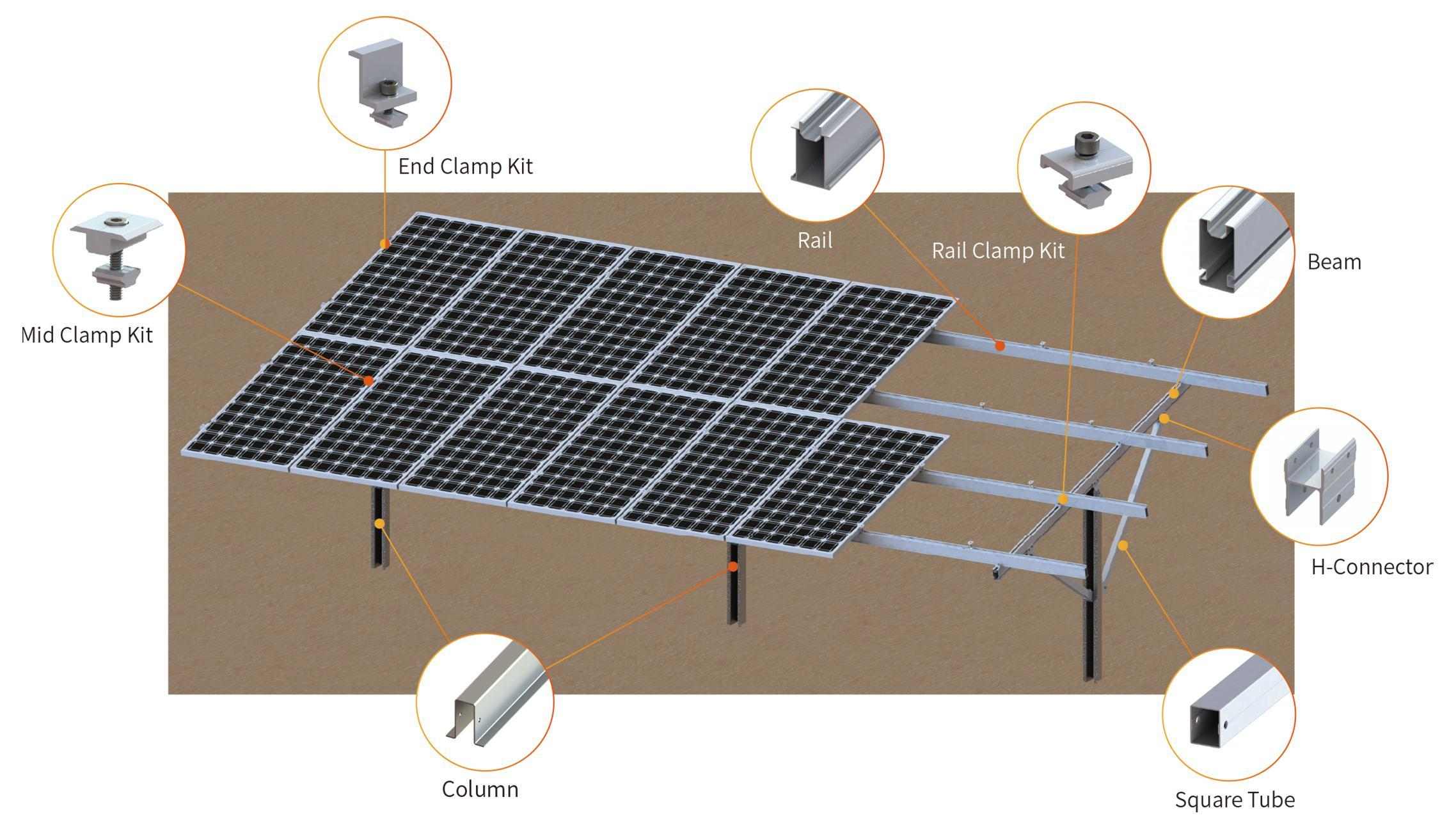 该地面安装太阳能套件为露天场地的太阳能装置提供了经济高效、用途广泛且可靠的基础解决方案,有助于加快项目周转速度并降低总体成本。
