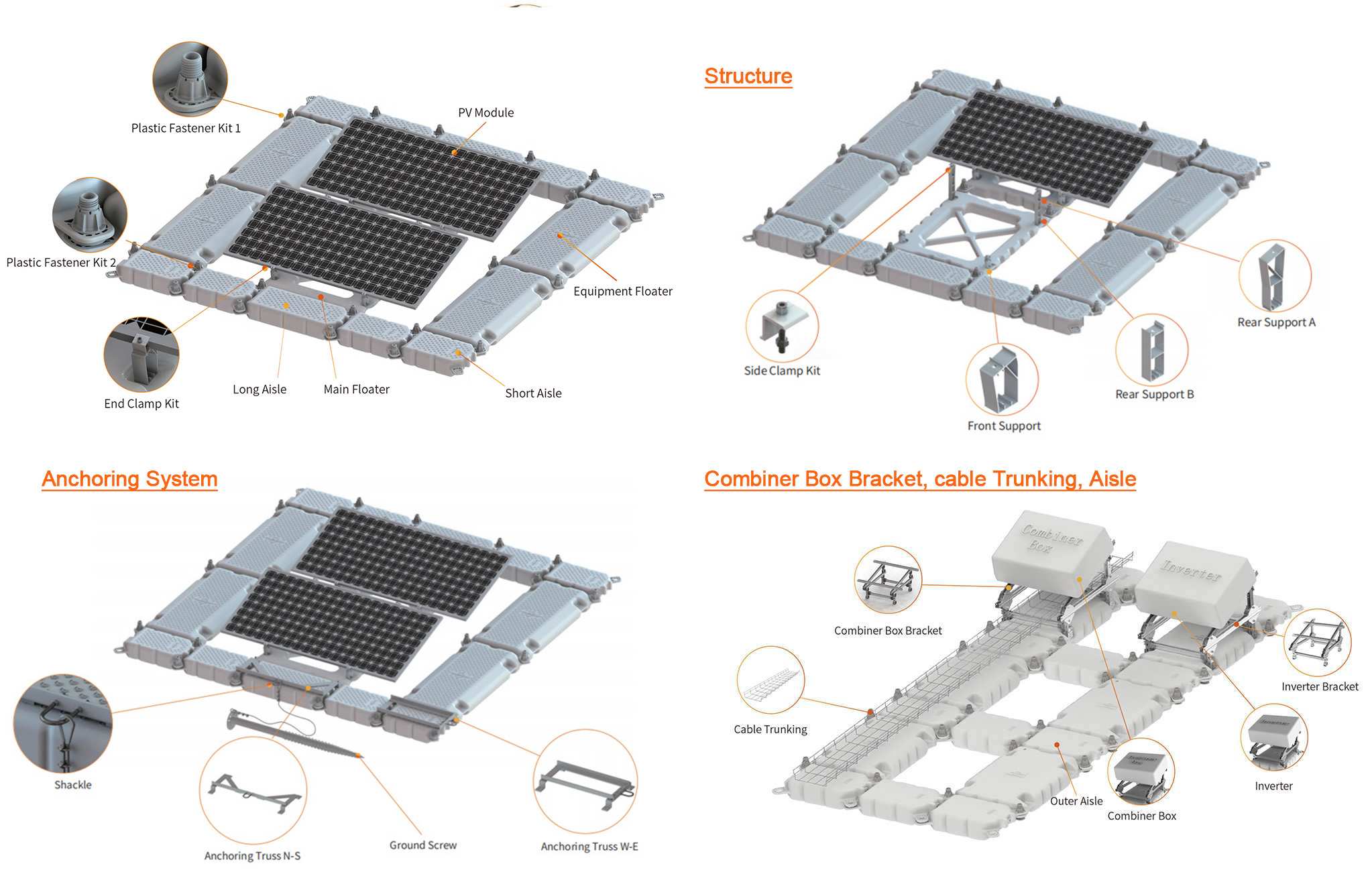 ✔ 水库:主要为浮动式(如水库中部深水区)或桩基固定式(靠近岸边的浅水区)