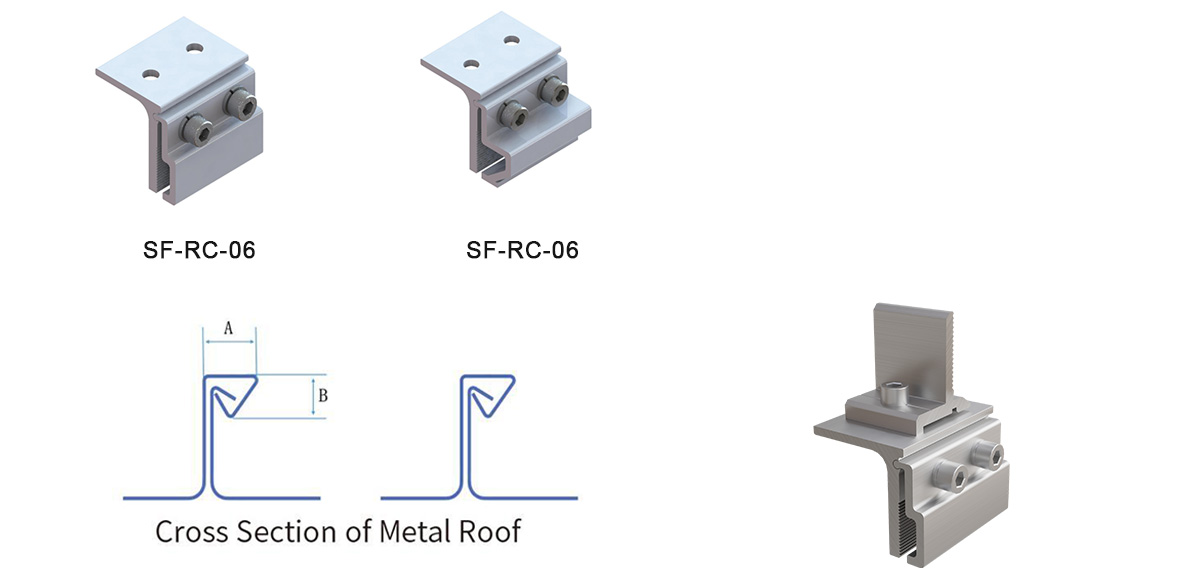 SF 金属屋顶支架搭配直立锁边屋顶夹,提供专业的直立锁边金属屋顶太阳能支架解决方案,专为直立锁边和锁边式金属屋面系统设计。这款非穿透式支架系统提供安全的安装解决方案,在保持屋顶完整性的同时,确保快速安装和经济高效。