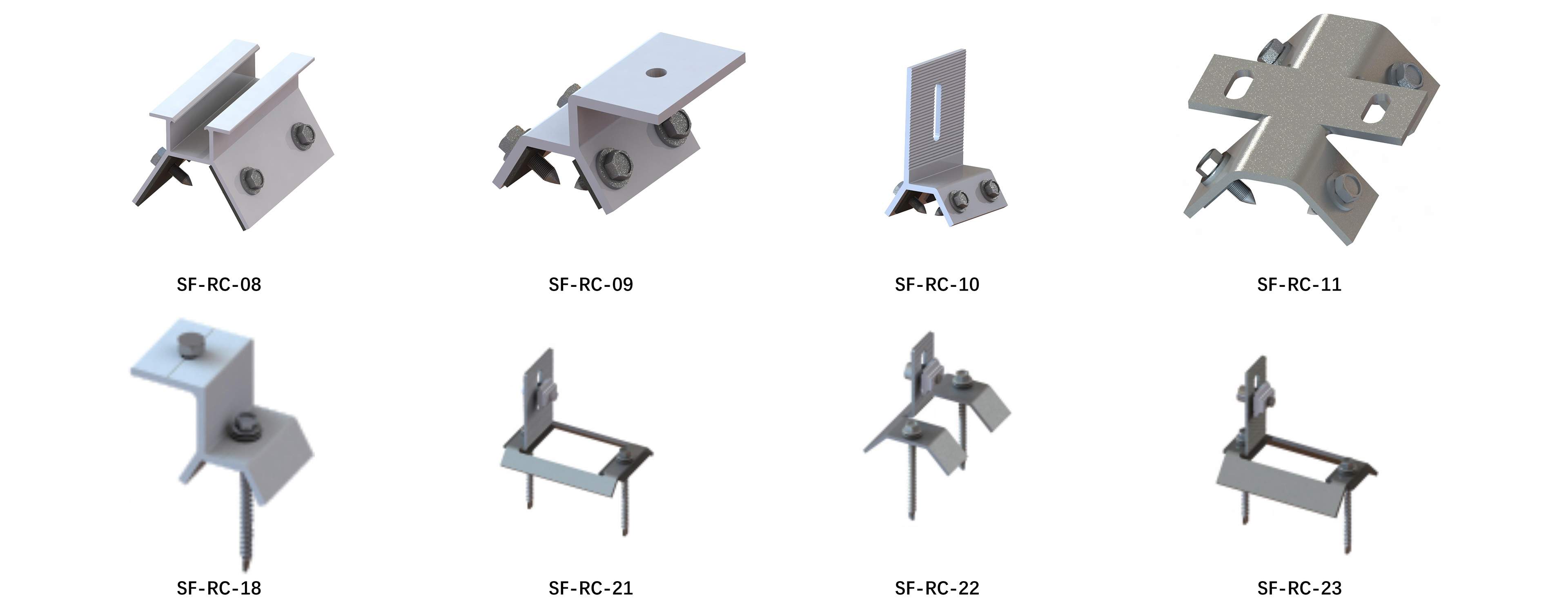 SF 金属屋顶支架搭配梯形屋顶夹,提供专为梯形金属屋顶系统设计的梯形太阳能金属屋顶安装解决方案。这款创新的太阳能屋顶支架套件采用精密设计的组件,可确保牢固地安装在各种梯形屋顶轮廓上,无需穿透屋顶。